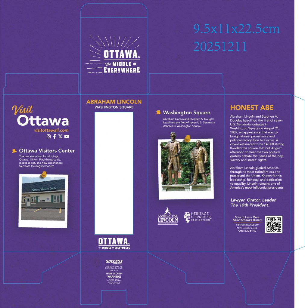 Each collectible features an antique-bronze finish and stands as a reminder of Ottawa’s proud place in shaping American history. Perfect for display, gifting, or adding to your Illinois history collection!