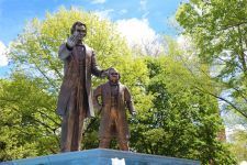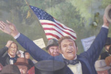 Location: La Salle St & W Jackson St Artist: Don Gray In artist Don Gray’s rendition, Lincoln and Douglas dramatically address the crowd gathered to hear them. News that the
